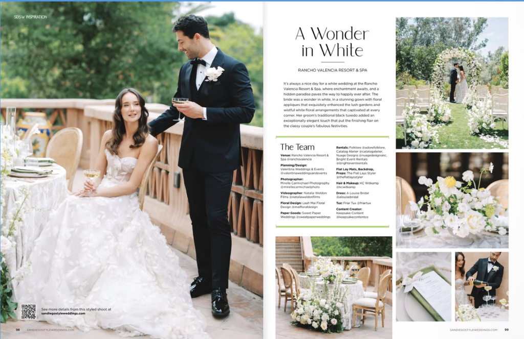 I am super excited to share that our Rancho Valencia wedding shoot has been featured in the printed edition of San Diego Style Weddings